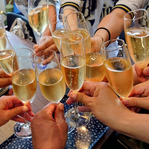 当店自慢のお料理と相性抜群の日本酒や焼酎、ビールなどご用意◎イタリア・フランス・スペイン・国産を中心にワインも多く取り揃えております。ご予算に応じてお好みのワインもご用意いたします。お好みの一杯とともにマリアージュをお楽しみください。お酒が苦手な方にはソフトドリンクもあり安心♪飲み放題3時間制です。