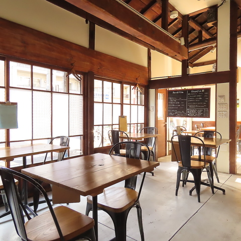 築年数を重ねた古民家ならではの開放的な吹き抜けと、木の質感を活かしたインテリア。大きな窓際の席は、自然光がたっぷりで写真映えも抜群です。美味しい料理と一緒に、このゆったりとした空気感もまるごと楽しんでください。大切な人と語らうのにも、自分へのご褒美ランチにも最適なテーブル席をご用意しております。