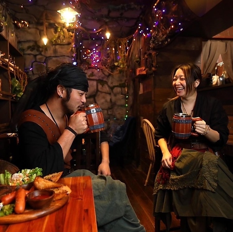 異世界の酒場を彷彿とさせる、その気にさせるメニューが盛りだくさん♪大人気の樽ジョッキビールであの世界観にドップリ浸っていただけます◎美味しい一杯を片手に、素敵な時間をお過ごしください★
