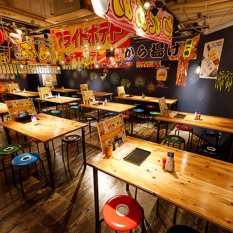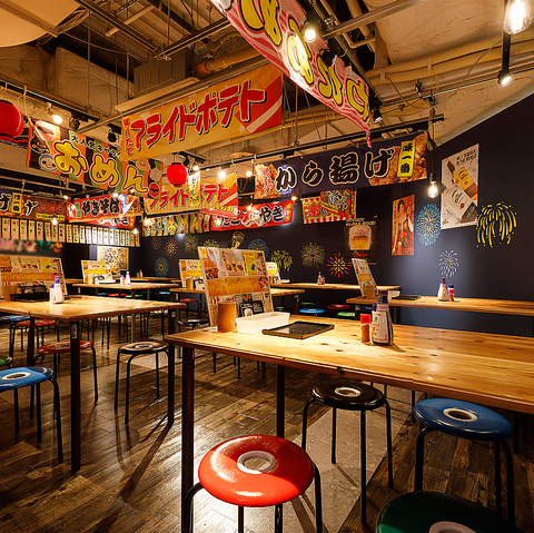 水戸駅すぐのオーパ9階という絶好のアクセス!一歩店内に入ると、そこは提灯がズラリと並ぶ活気あふれるお祭り屋台の世界が広がります。お仕事帰りのサク飲みやご友人との飲み会など、時間を忘れてワイワイ楽しめる非日常空間をご提供。駅チカなので、終電ギリギリまでたっぷり飲んで笑って大満足間違いなしです!