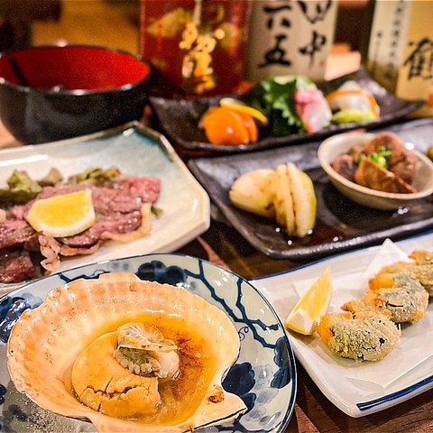 お客様にはお食事も思う存分楽しんでいただきたいという想いから、コースは少なくても7品~という充実っぷり。コースには炉端で焼いた深みのあるお野菜はもちろん、新鮮な海鮮やジューシーなお肉まで、様々な食材をお楽しみいただけます。