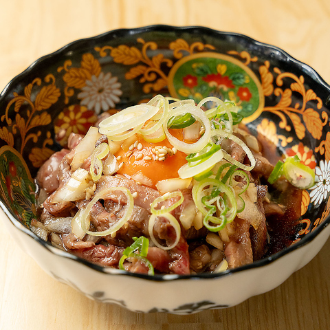 厳選した国産牛を使用した、ローストビーフ風ユッケです!新鮮な卵黄をトッピングし、濃厚な味わいとともにジューシーなお肉の旨みを味わえます。ネギのピリッとした辛味もアクセントに!ご飯にもお酒にもぴったりな、贅沢な一品をぜひお楽しみください★ドリンクメニューも種類豊富に取り揃えております◎