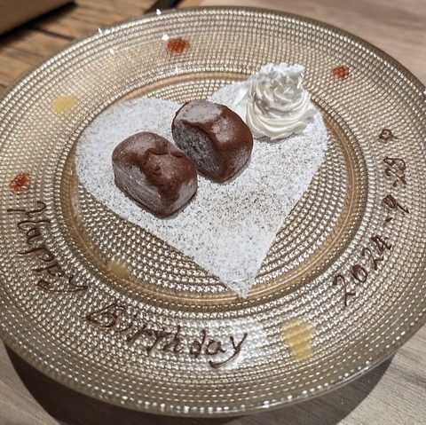 クーポンご利用で特製のメッセージプレートを0円でご提供!お祝いや誕生日のサプライズにぴったり★