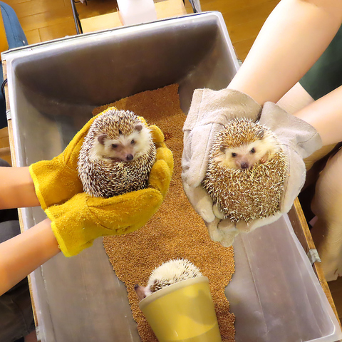 【ご家族連れやカップルにもおすすめです♪】ご友人同士やご家族、カップルでご利用される方も多く、お子様用の手袋もご用意しておりますので、どうぞ安心してご利用ください!ハリネズミにおやつをあげて、触れ合っていただけるコースもございます。最高のハリネズミ体験をお楽しみください!