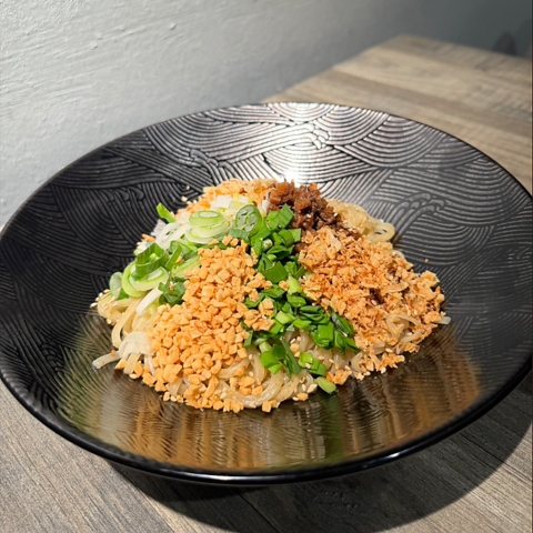 汁なし坦々麺は、スパイシーなソースとモチモチの麺が絶妙に絡み合う、満足感たっぷりの一品です。仕上げに振りかけられた香ばしいトッピングが、食感を引き立て、さらに美味しさをアップ!一口食べれば、やみつきになること間違いなし。あなたの食欲を刺激すること間違いなしです◎