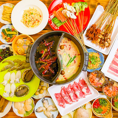 火鍋の辛さを選んだらお好きな具材を注文してお召し上がりください!ランチも営業しております!