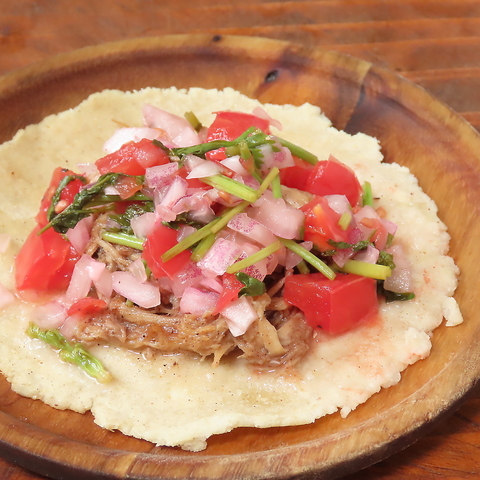 トマト、玉ねぎ、パクチーのベーシックで一番人気のタコスです。