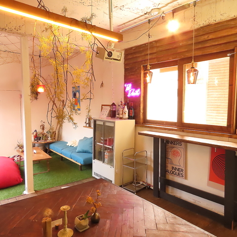 一階のウッドデッキ席やソファ席では人数を問わず、パーティースペースとしてご利用いただけます♪プロジェクターも完備しております。(プロジェクター利用は事前にスタッフにご相談ください)。ゆったりとした時間が流れる店内で、当店自慢の種類豊富なお料理とドリンクを召し上がりながら、楽しいひと時をお過ごしください☆