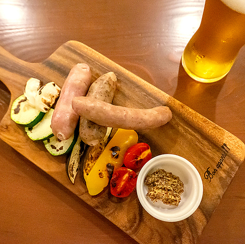 千葉県産のポークを使用したソーセージを盛り合わせで。クラフトビールと相性抜群の一品です。