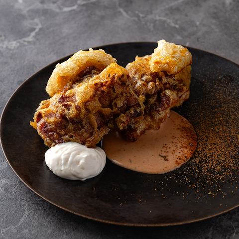 ロースターマシンでじっくりと焼き上げる極上のローストチキンは、香り豊かでジューシーな味わいを楽しんでいただけます。3種のソース(ソースシュプレーム/レフォールクリーム/胡椒コンディモン)に絡めてお召し上がりください。