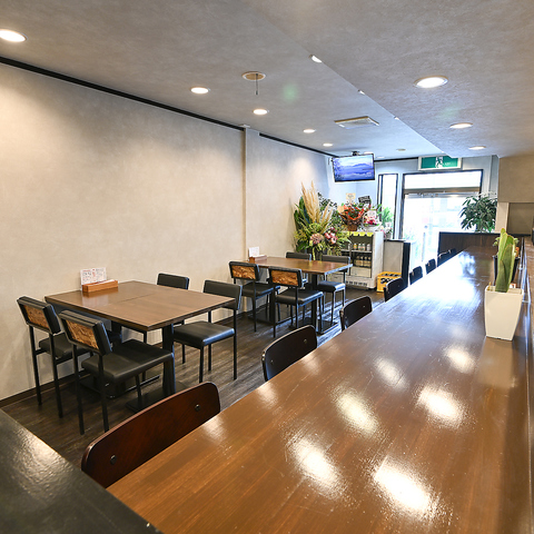 すっきりとシンプルな内装が落ち着きのあるテーブル席。ご友人とのお食事やご家族での団欒など、シーンを問わず便利にお使いいただけます。お仕事帰りの一杯や女子会にもおすすめ◎