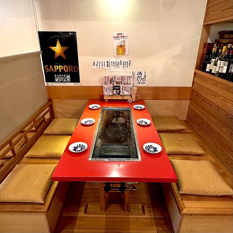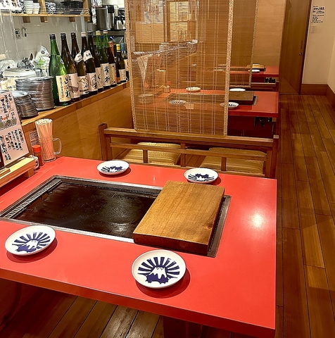 | 貸切 | 48名様×1 | 2階は各テーブル仕切りをつけて半個室になります。2階貸切25名様からOK!貸切でも全席鉄板付テーブルで料理をお楽しみ頂けます!貸切時、仕切り無しで歓送迎会や打ち上げなどに最適な空間♪クラブ活動などの打ち上げなどにもご利用可能!お気軽にお問合せ下さい♪ |
