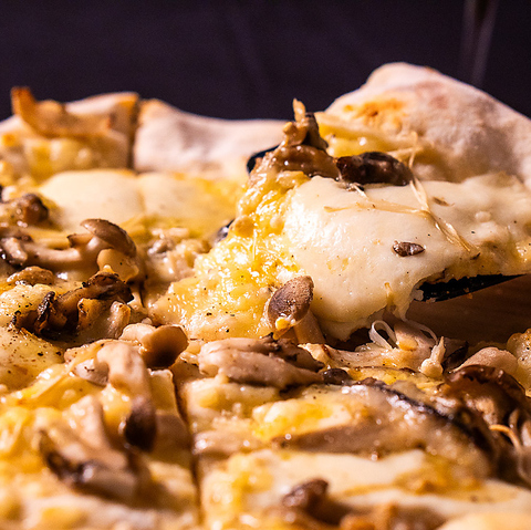 濃厚なトリュフと香ばしいキノコの相性が抜群の一品!贅沢な味わいをお楽しみください。ピザ生地も職人がこだわりを持って手作りし、外はサクサク、中はもちもちの食感が自慢です。ランチタイムやディナータイム、お食事にもピッタリの逸品です。