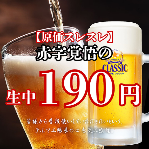 赤字覚悟のサッポロクラシック生ビール190円!!コンセプトは「安くて楽しい」それを実現するためにお客様に大還元♪♪