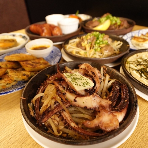 鉄板料理と豊富なアテ◎お酒が進むアテや熱々を頂く鉄板料理を豊富にご用意!小皿ベースのアテも豊富にご用意しておりますので、お好きなアテを好きなだけご注文下さい♪単品メニューの他様々なシーンでご利用頂ける飲み放題付きコース料理もご用意しております。ご要望ご不明点等はお気軽にお問い合わせくださいませ!