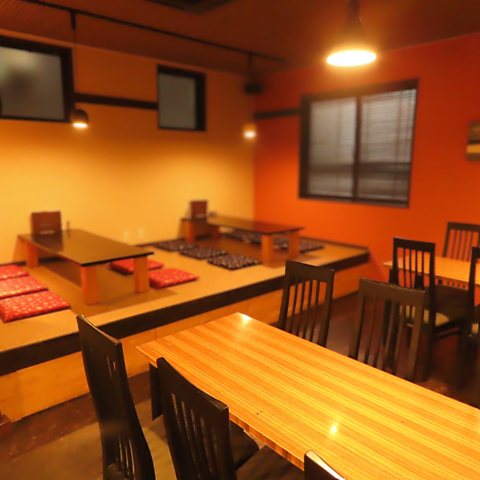 店内には、大人数で使える広いテーブル席や、座敷席を完備。お仕事帰りのサク飲みや、女子会、会社宴会など様々なシーンで炭火焼鳥をお楽しみいただけます。20名様~最大24名様での貸切も可能!人数やご予算などお気軽にご相談ください。