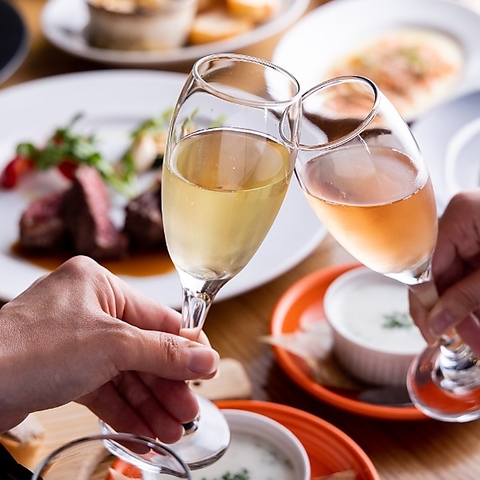 世界各国のワイン70種類はもちろん、樽生やハイボール・カクテルやサワーなども全部入った3時間たっぷり飲み放題付き!お料理には自慢の「自家製窯焼きPIZZA(またはパスタ)」や「前菜盛り合わせ」「季節のアヒージョ」などが付き、ボリュームも◎(詳細はコースページをご確認ください。)