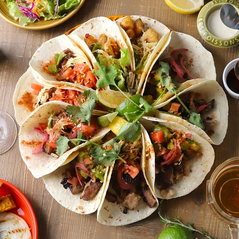 385円から楽しめる14種類のタパスをはじめ、もっちり食感が人気の店内発酵生地を使用したアメリカンピザ、スパイシーな本格メキシカンタコスなど、お酒と相性抜群のメニューもたくさん☆