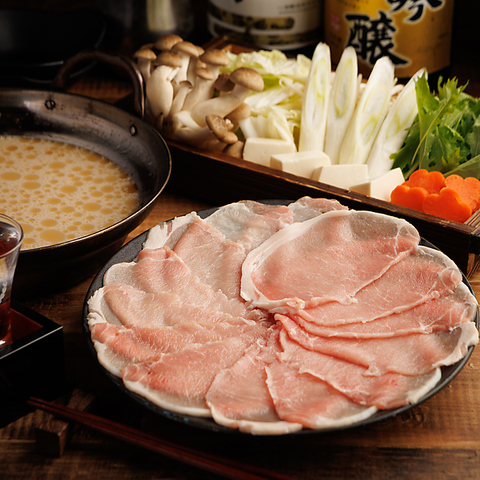特製の鶏白湯出汁に、越後もち豚をさっとくぐらせれば、とろける口どけと甘い脂がジュワッと広がる!長ネギや豆腐などの具材と、薬味で味の変化も楽しめて、飲み会の主役にも〆まで優秀な一鍋です!