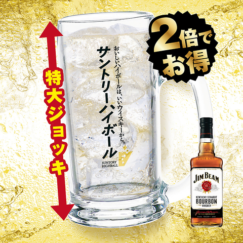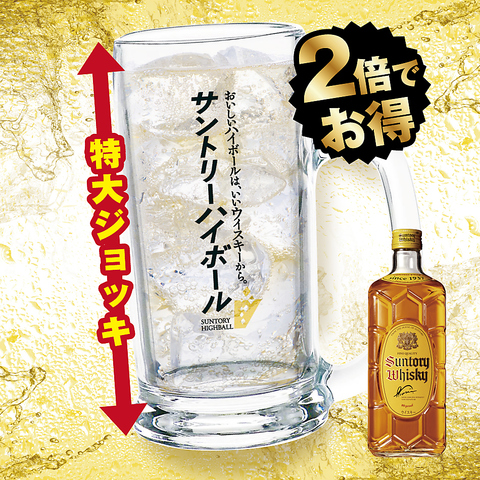 【ハイボール・ウイスキー】 ハイボール〈濃いめ〉+200円(税込) ロック・水割り〈ダブル〉+200円(税込)