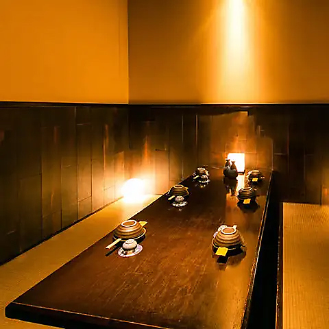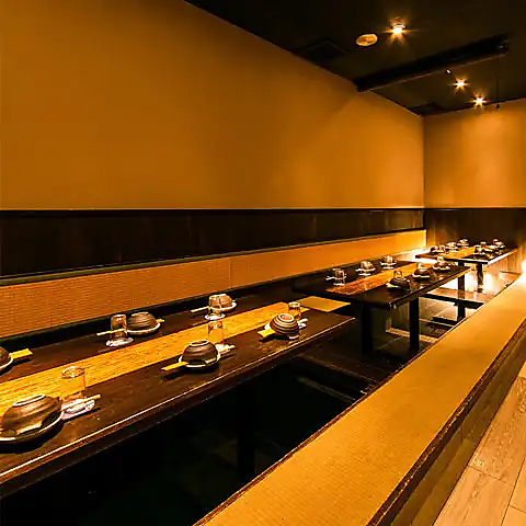各種宴会・飲み会にピッタリの掘りごたつ個室も完備してます!足を伸ばしてゆったり座れるので、長時間の宴会・飲み会にも快適!友人との飲み会をのんびり楽しみたい時に最適な癒しの個室空間です!