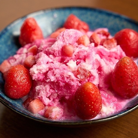 いちごの果肉がたっぷり乗ったいちごかき氷は、甘さと爽やかさが絶妙に組み合わさった夏の定番デザートです。ふわふわの氷に新鮮ないちごの果肉が贅沢にトッピングされ、食欲をそそります。口に入れた瞬間、いちごのジューシーな味わいが広がり、暑い日や特別なひとときにぴったりのスイーツです。