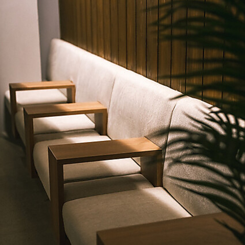 カウンター席は、シックなデザインと心地よい照明が融合し、特別なひとときを演出します。お仕事帰りはもちろん、一人の静かな時間を楽しむのにもぴったりな空間、自分だけの時間に浸ることができます。日常のストレスを忘れ、心からリフレッシュできるひとときをお過ごしください。