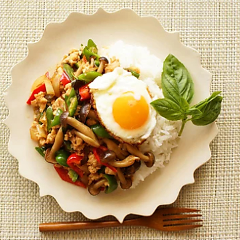 肉類やホーリーバジルなどをナンプラー、オイスターソースとともに炒めたタイ料理