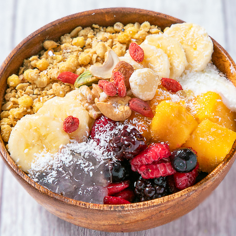 6種のフルーツやアロエを含む15食材が一度に楽しめるスペシャルなアサイーボウル。自分へのご褒美にピッタリです! ※使用食材 アサイースムージー/バナナ/グラノラ/ゴジベリー/マンゴー/イチゴ/ブルーベリー/ラズベリー/クランベリー/アロエ/ミックスナッツ/スーパーフード/ココナッツファイン/はちみ