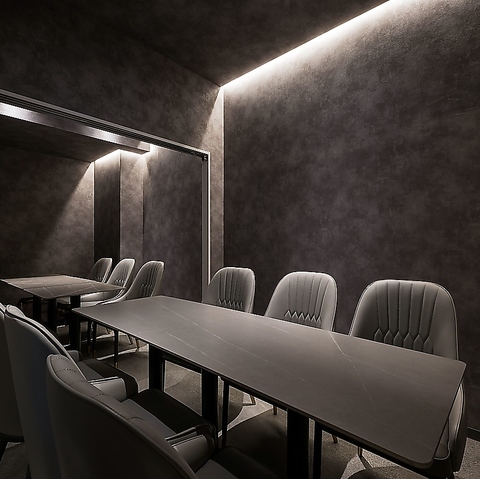 シックで洗練されたデザインの店内は、大人の隠れ家のような落ち着きと、心地よい開放感が魅力です。落ちてた雰囲気のインテリアや間接照明が織りなす上質な空間で、ゆったりとお食事をお楽しみいただけます。お一人様からデート、女子会、接待まで幅広くご利用いただけるお席をご用意。心地よい音楽とともに、特別な時間をお過ごしください。