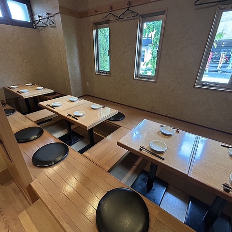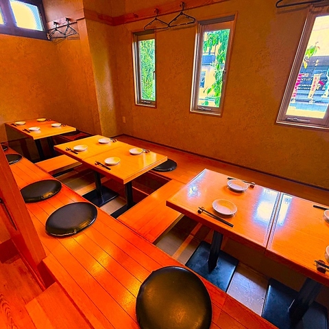★14名様~4名様までの飲み会、お食事に◎小上がり掘りごたつでくつろぎ空間★14名様までの大きなご宴会はもちろん、各卓を囲んだプライベートの飲み会、お食事にも最適♪窓から日が差す温かみのある空間で皆様の会話も弾むはず◎美味しいお料理とご一緒にお腹も心も満たされます♪