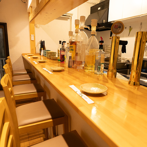目の前で繰り広げられる調理のライブ感を味わえるカウンター席は、立ち飲みですがお一人様でも気軽に立ち寄れる特等席です。旬の食材が美しく変化する様を眺めながら、出来立ての料理を五感で堪能する贅沢な時間をお過ごしください。会話に花を咲かせたい夜には、気さくなスタッフとの語らいも魅力の一つ。