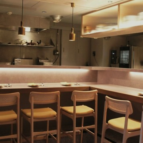 【どなたでも歓迎するカウンター席】落ち着きのあるモダンな空間に、シェフの技を間近で楽しめるカウンター席。リラックスした雰囲気の中、自慢料理とこだわりのドリンクをじっくり味わえます♪お一人様やデートでお気軽にお立ち寄りください。