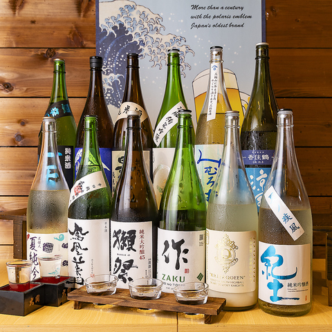 全国各地の日本酒は、季節によって内容が変わります。海鮮との相性も抜群です!