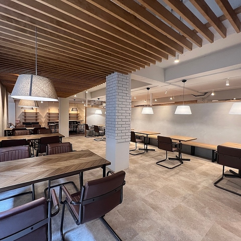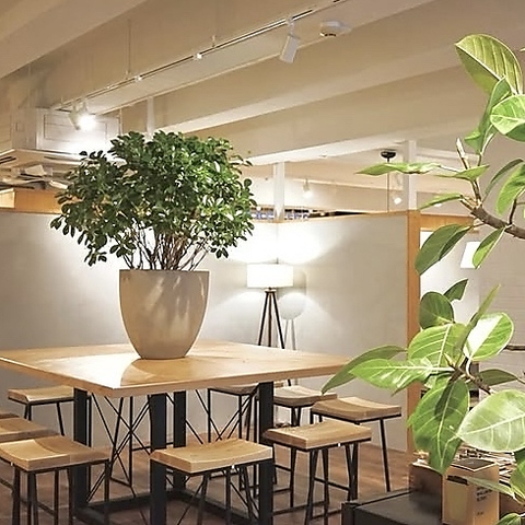【広々とした落ち着いた空間】緑やその温もりを生かした店内は広々としていてとても落ち着ける空間です。日常をそっと忘れられる癒しの空間もご用意。心静かにくつろげるゆったりとした時間をお過ごしください。