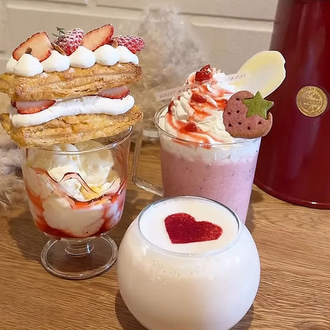 期間限定の苺パフェが1/25より販売開始!苺とカスタードがたっぷりで絶品の一品です。珈琲や紅茶などと一緒に食べたくなる満足感◎なパフェです。