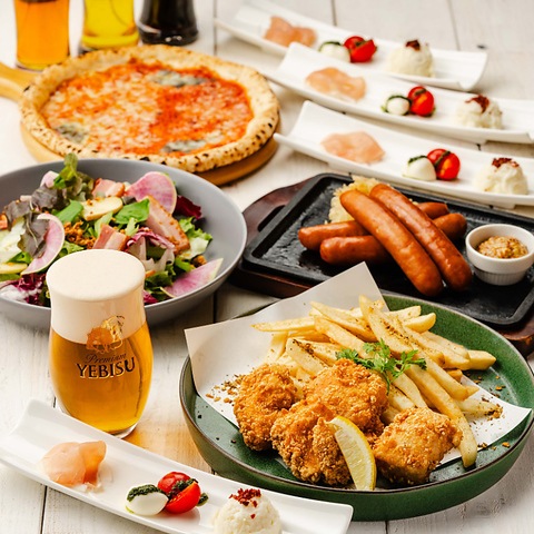 【当日OK!】ヱビス生ビール全9種&ビヤカクテル8種も90分飲み放題!ヱビスバー定番おつまみ5品をご用意。