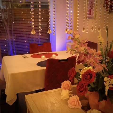 白を基調とした店内はおしゃれなインテリアやペンダントライトで雰囲気づくりに配慮しております。美味しい料理と共に優雅なひとときがお過ごしいただけるよう演出いたします。記念日、お祝いなどスペシャルプレートのご用意も可能ですのでお気軽にご相談ください。