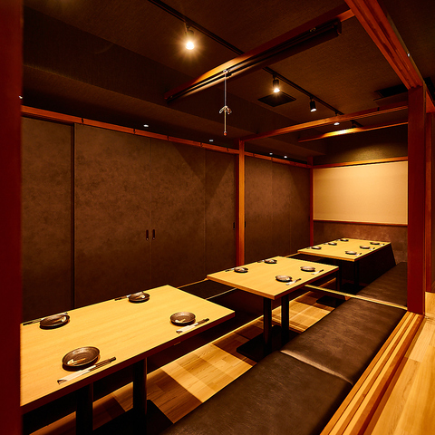 大人な雰囲気の広々としたゆったり個室を完備◎暗めの照明でゆったり寛げる居心地の良さ。接待デートにも♪