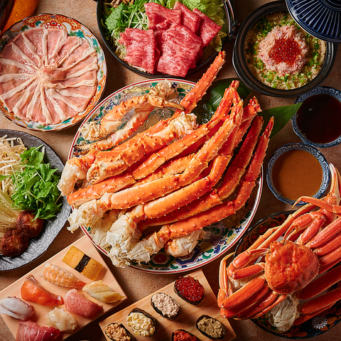| 食べ放題 | あり :タラバ・ズワイ蟹×寿司×すき焼きしゃぶしゃぶ食べ放題 |