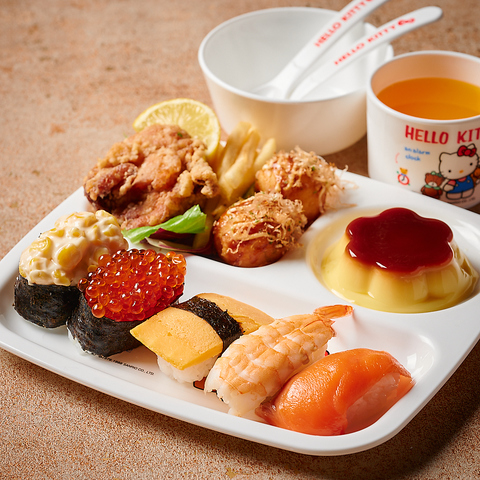 ご家族様のご利用も大歓迎!小さいお子様にも喜んでいただけるようなキッズプレートをご用意中◎お寿司や唐揚げ、たこ焼きにプリン、人気のメニューを集めました♪
