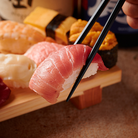 朝採れの素材をその日のうちに仕入れており、徹底した温度管理のもとで管理を行なっております。寿司の種類は定番のものから変わり種まで約45種類ものバリエーションがあり選ぶ楽しさもございます。