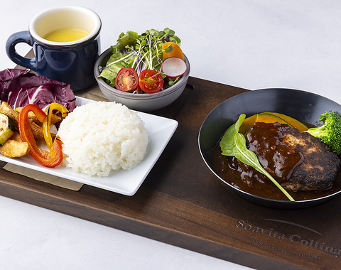 フワフワで肉汁を逃がさないハンバーグ。旨味を最大限に引き出した、Soavita Collinaだけの贅沢な味わいを存分にお楽しみください。