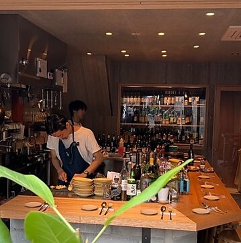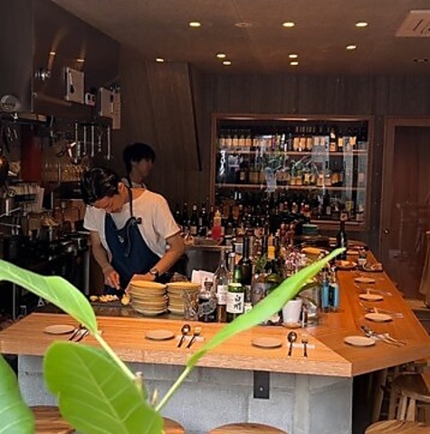 【お一人様も大歓迎☆】オープンキッチンに設置されたカウンター席が14席ありますので、お一人様でもお気軽にお立ち寄りいただけます!店員との会話を楽しみながら、美味しいお酒とお料理をご堪能ください!