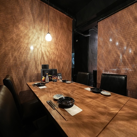 3~4名様でご利用いただけるテーブル席を完備。仕切りを活用することで、完全個室ではありませんが、周囲を気にせず過ごせる半個室空間を演出しています。落ち着いた雰囲気の中で、ゆったりとした時間をお楽しみください。