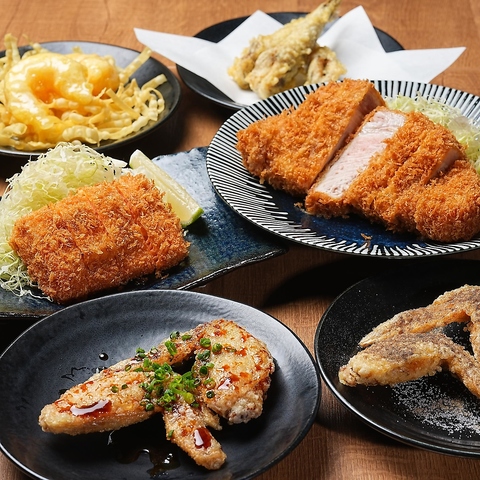 その日仕入れた旬の食材を使い、丁寧に揚げた逸品揃いの揚げ物メニュー。厚切りとんかつやヒレカツ、エビフライなど、素材の持ち味を活かした一皿は、香ばしさと旨みが際立つ贅沢な味わいです。