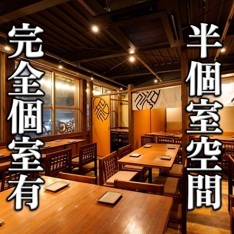 最大6名様の完全個室あり♪『半個室席』は2~12名様まで♪「のれん・ロールスクリーン」で仕切り可能です♪