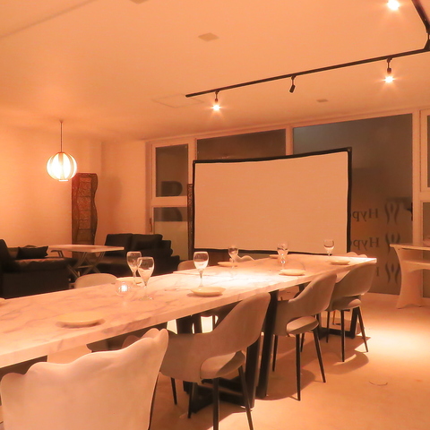 当店は事前予約制になります。最大28名程度までご利用いただけます。落ち着いた店内でゆったりとお過ごしください。スクリーン・プロジェクターのご用意もございます。プライベートパーティーや女子会等で店内の装飾を頂くことも可能です(事前にご相談ください)!会議~お食事のご予約もご相談ください!