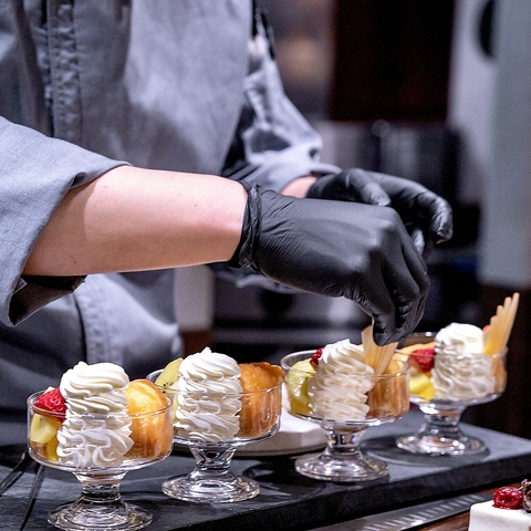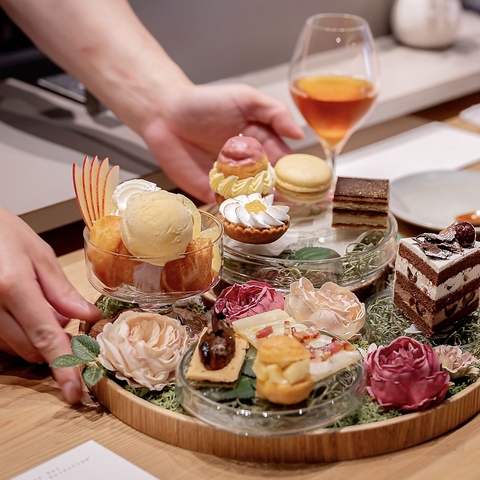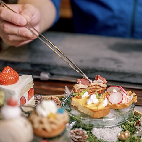 次々と仕上がるスイーツや料理を目の前で眺められるのも当店の醍醐味。出来立ての香りやシェフの手仕事を楽しみながら、日常を忘れひたすらに美味しいと向き合っていただけます。ぜひシェフとのお話もお楽しみくださいませ。