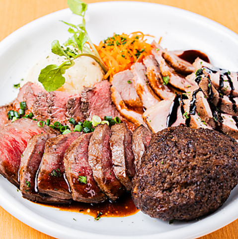 圧巻のボリュームと豪華さ!肉汁たっぷりのハンバーグなど、厳選した数種類のお肉料理を一度に楽しめる、バレルならではの一皿。それぞれ違う調理法で仕上げられており、食感と味の違いを堪能できます。友人とのシェアにもぴったり◎